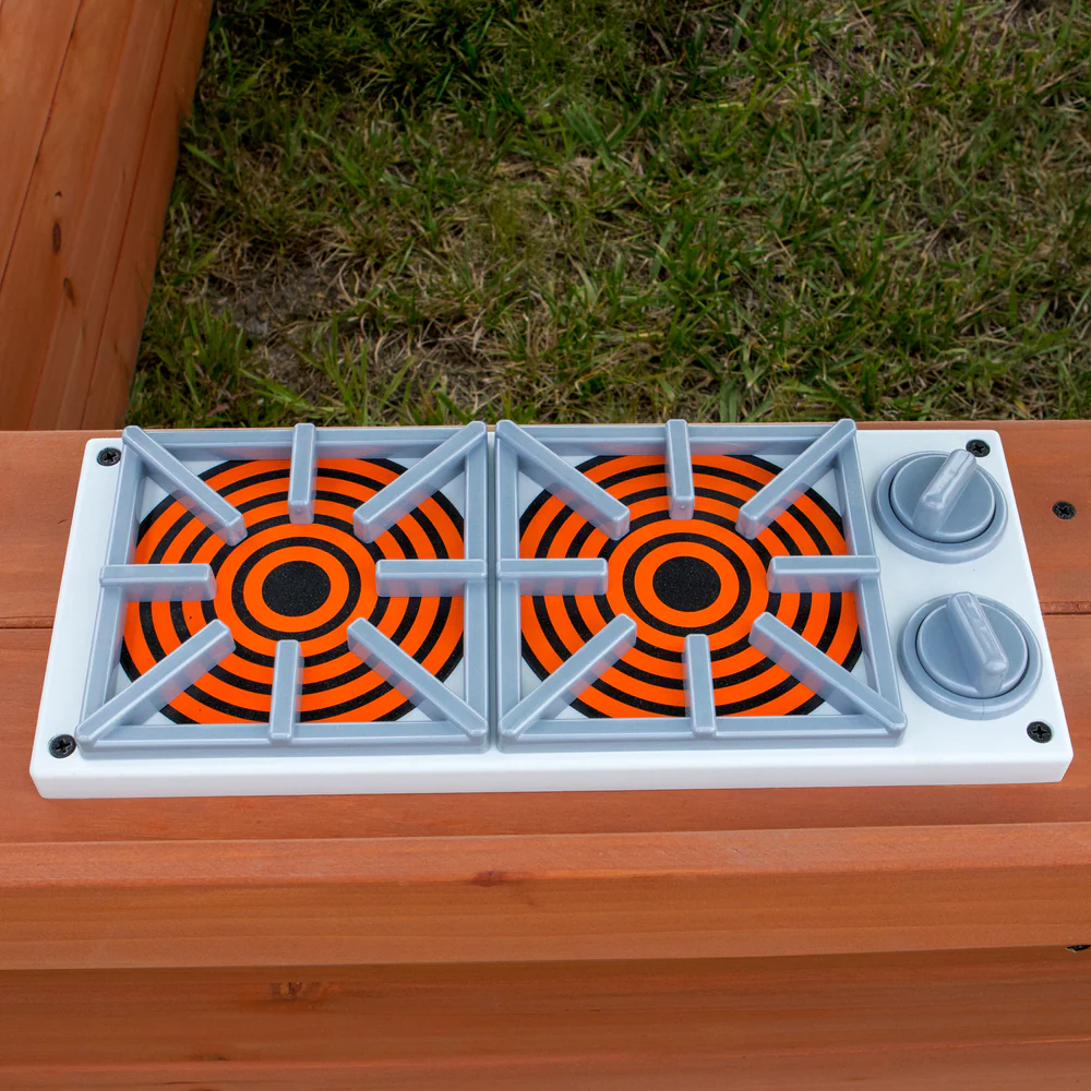 The Timberlake Playhouse is a great playhouse that the whole gang will love. It has wide windows that sunny breezes can blow through. The front is adorned with flower pot holders and a cute half-door. On one side there is a snack window for serving up cool drinks on a summer day. And inside, there are play accessories that include a sink, stove, and cordless phone. The Timberlake Playhouse assembles in as little as one hour! (Flower pots and flowers not included).