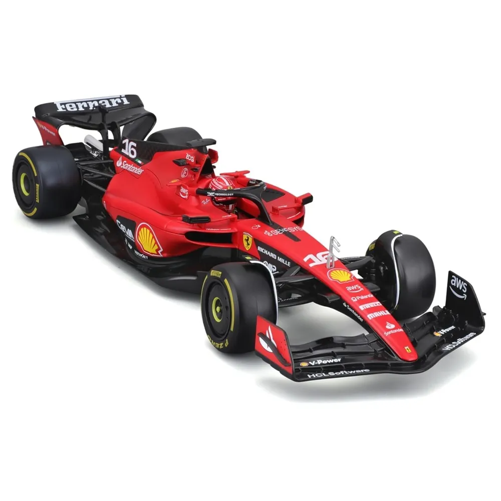 Bburago Ferrari SF23 Formula 1 Charles Leclerc 2023 Signature Die Cast #16 1/18 scale Diecast Car Model. Officially Licensed by Ferrari for adult collectors 14+ years.