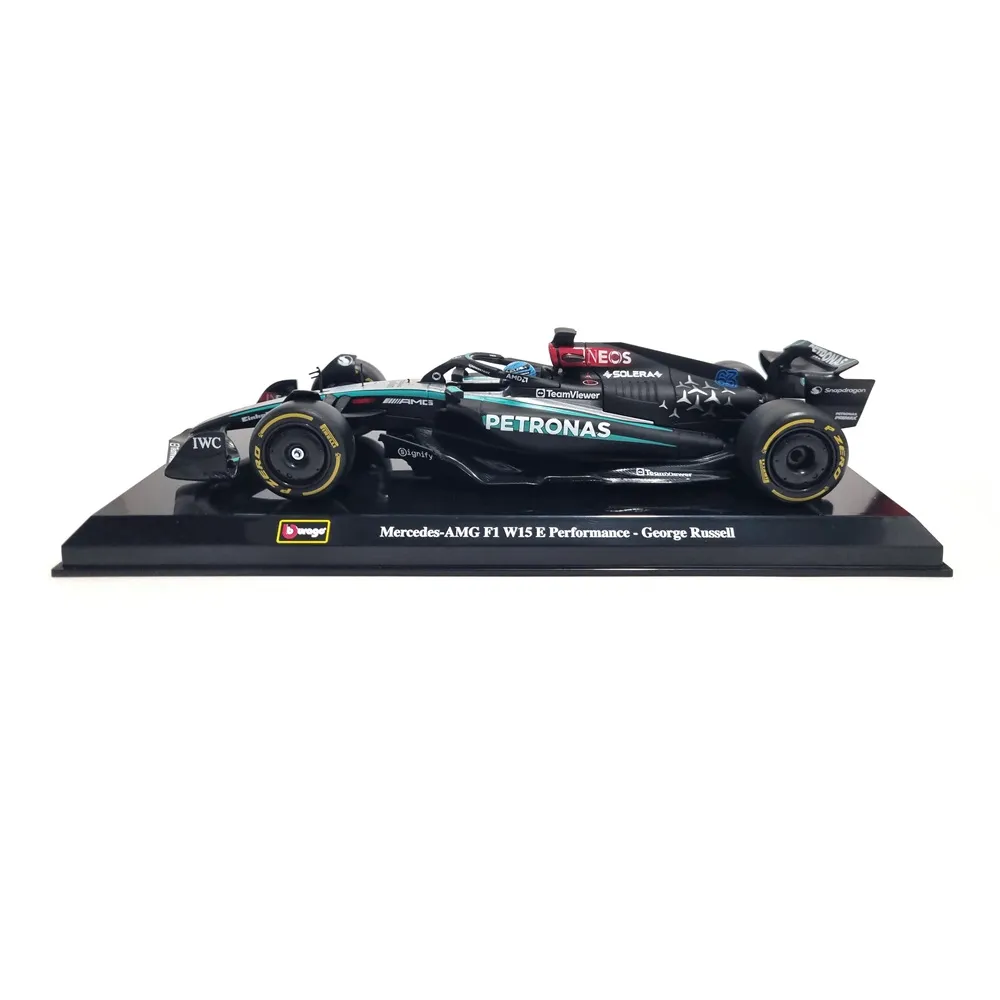 Bring the thrill of Formula 1 into your collection with the Bburago 1/24 Mercedes-AMG F1 W15 #63 George Russell diecast model. Crafted with precision and attention to detail, this officially licensed replica captures the sleek lines, aerodynamic design, and racing spirit of Mercedes-AMG’s 2024 challenger.