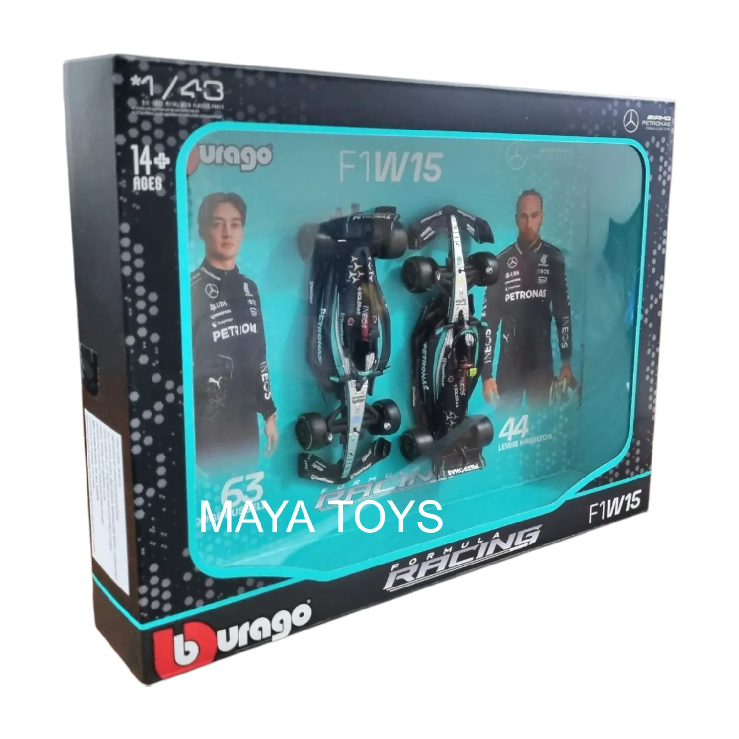 Bburago 1/43 Mercedes-AMG W15 Performance Set of 2 F1 Models #44 Lewis Hamilton #63 George Russel