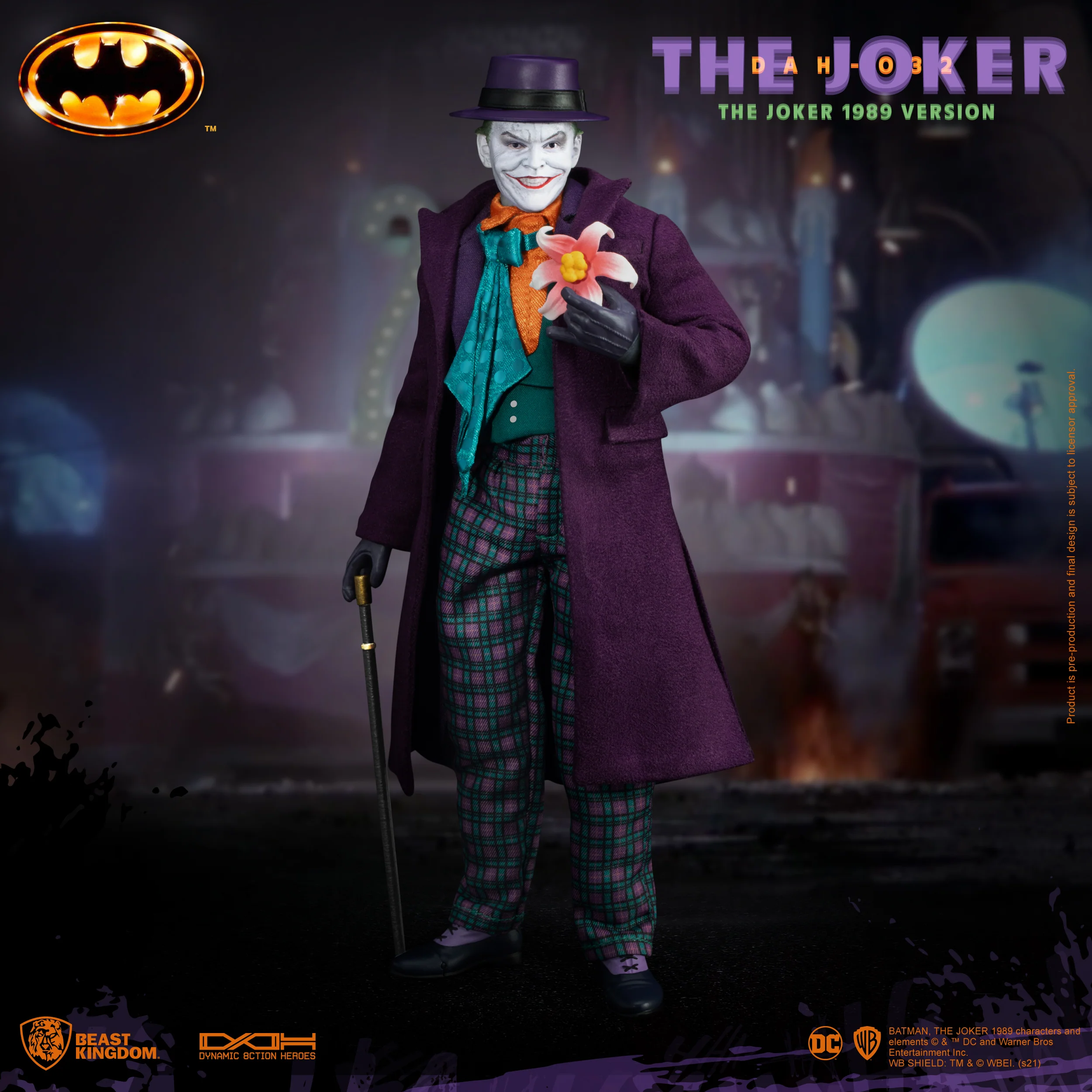 Beast Kingdom’s ‘Entertainment Experience Brand’ proudly enters the world of Tim Burton’s Batman with the release of a highly articulable DAH-032 Batman 1989 Joker. An action figure ready for the ultimate in posing possibilities with its 20 points of articulation, the Joker’s diverse yet scary grin is on full display, with two replaceable head sculpts. With an attention to detail, every element of the 1989 Joker is recreated using a full body suit made of real fabric as well as a set of seven replaceable hands. Included in the set are also some of the Joker’s most iconic accessories, such as the flag pistol, megaphone, dentures and more.