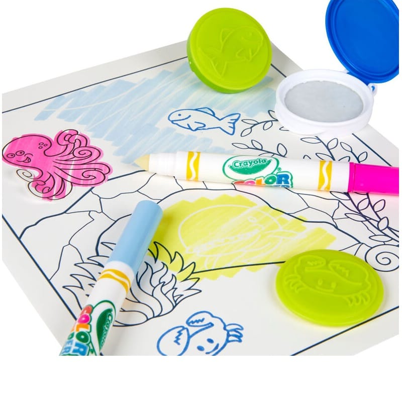 - COLOR WONDER ART KIT: Features 24 Color Wonder Coloring Pages, 5 Ocean-Themed Stampers, 1 Stamp Pad, 5 Color Wonder Markers, and 3 Ocean-Themed Sticker Sheets. All the supplies are organized in a Storage Case.