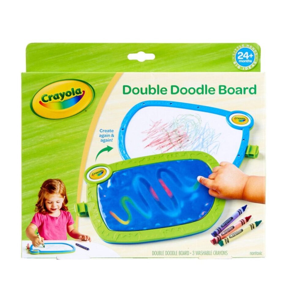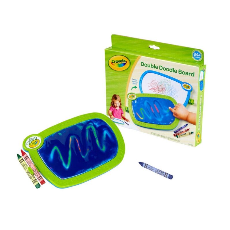 - DOUBLE DOODLE BOARD: Provides young artists with 2 Reusable Drawing Surfaces and 4 Ultra Clean Washable Crayons. Formerly My First Double Doodle Board.