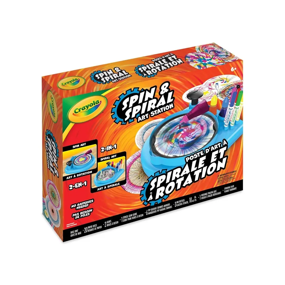 Creative girls and boys will delight in the chance to make spin & spirograph art powered by hand! A sleek & enhanced design make the Crayola Spin & Spiral Art Station easier for kids to use and more portable than ever. Its unique Super Gear helps kids with their spiral art, while allowing them to use all 6 markers at once. Plus, the ability to create spin and spiral art on one base, means this toy takes up less space while being easier to store.