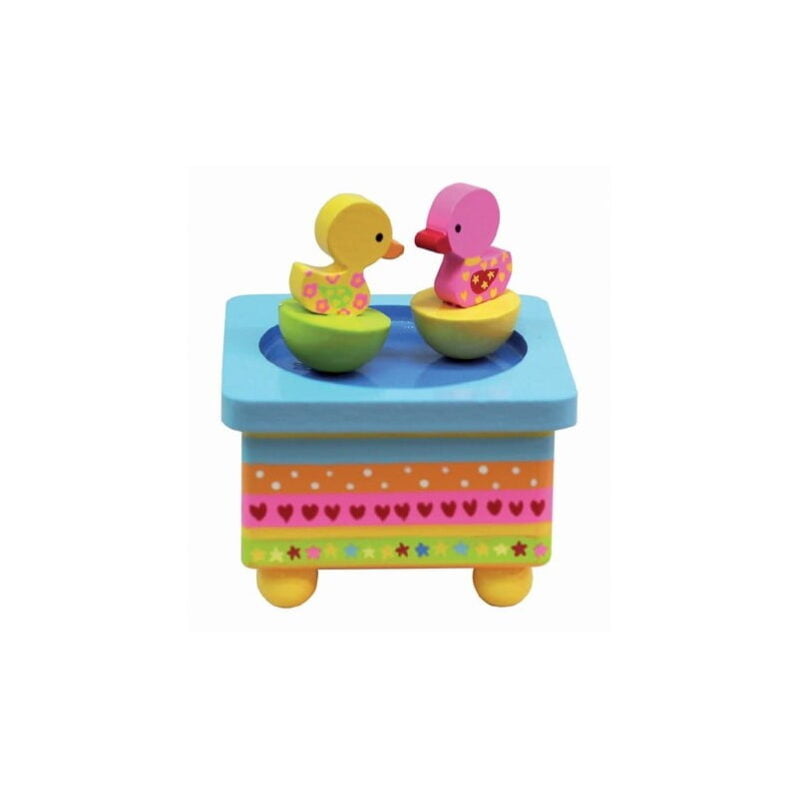 Dancing rubber ducks turn to the melody “All my ducklings”. Measures: 10x10x7 cm.