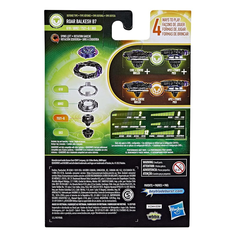 - Train to become champion of the arena with the included left-spin Beyblade Burst QuadDrive Roar Balkesh B7 G10 QD02 TS21-Q D03 top and launcher.