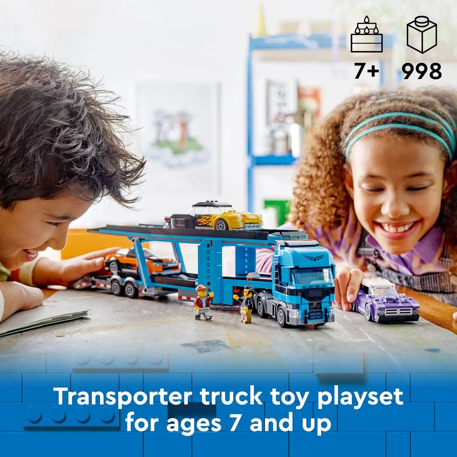 - Transporter truck toy playset – Fans of toy vehicles will love this multi-vehicle LEGO City Car Transporter Truck with Sports Cars building set for boys and girls aged 7 and up