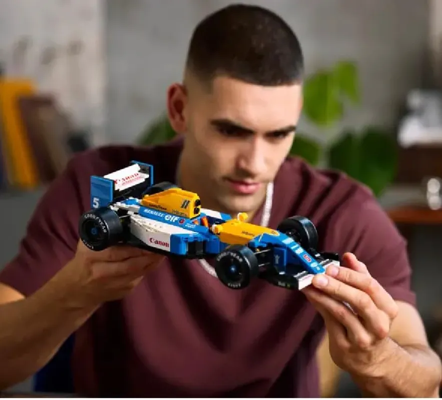 Hail the history of F1 innovation with the LEGO Icons Williams Racing FW14B & Nigel Mansell (10353) home and office desk decor model building kit for adults. Craft a replica of the legendary F1 race car that propelled Nigel Mansell to victory in the 1992 Formula 1 World Championship. Complete with a Nigel Mansell minifigure, this premium display model makes a captivating centerpiece and a great holiday or birthday gift for fans of F1.