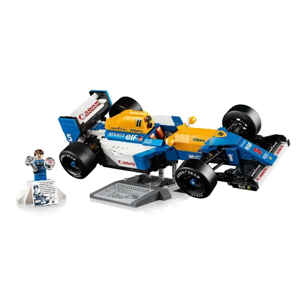 The LEGO Icons Williams FW14B features working steering, wide rear slick tires with printed Goodyear lettering and a detailed engine, plus a display stand with vehicle details and stats. The Nigel Mansell minifigure comes with a helmet and a podium-style display stand featuring a photo and a quote from the legendary driver. Discover the dynamic range of LEGO F1 building sets designed for adults, kids and families. The LEGO Builder app features a 3D version of the building instructions included with this collectible race car construction kit.