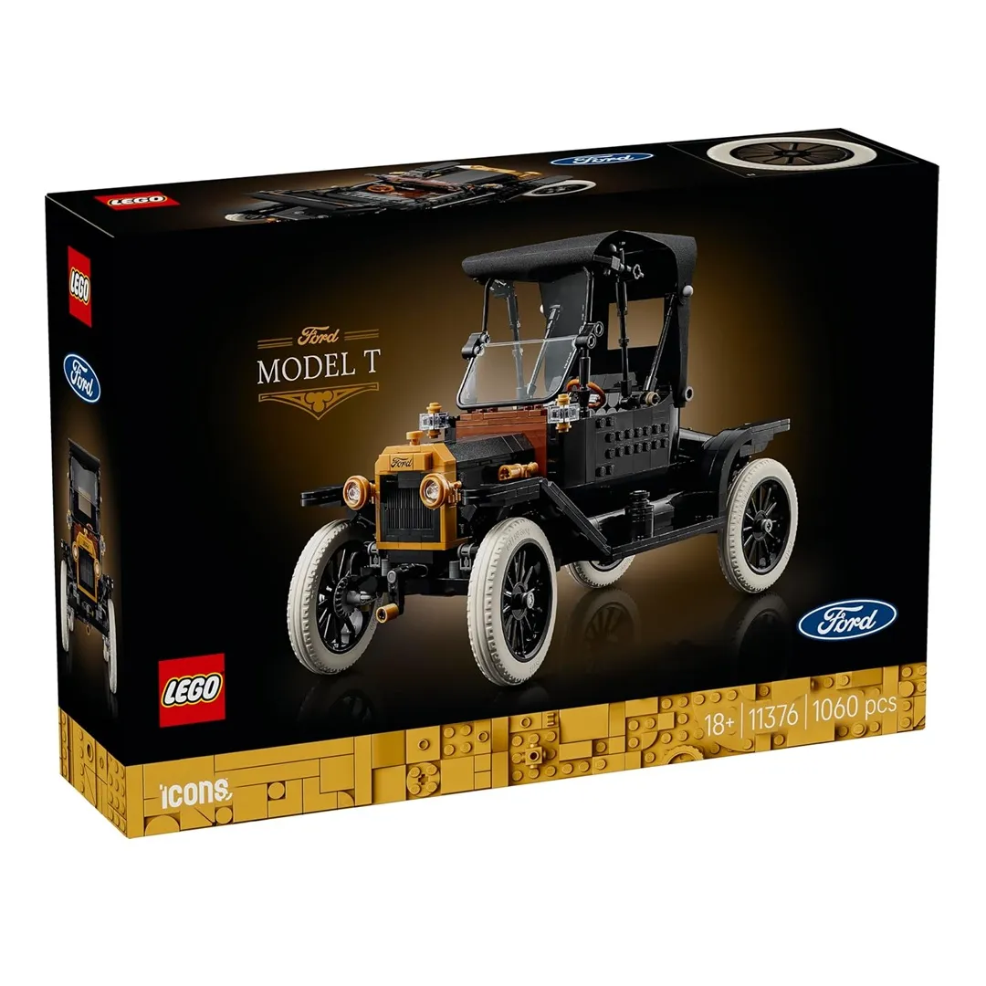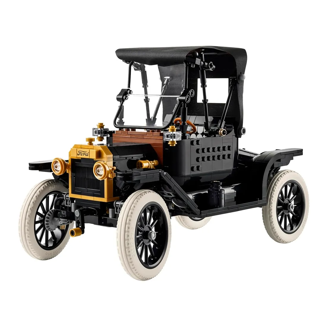 Celebrate an icon of automotive history with the LEGO Icons Ford Model T (11376) model car kit for adults. This authentic replica of the 1910s automobile comes with a fold back fabric roof, fold-down split windshield and a single opening passenger door. Other features include an opening rear trunk and a highly detailed driver’s cab with working steering. Lift the seat to access the gas tank. Lift the hood panels from both sides to reveal the engine and turn the crank to spin the fan.