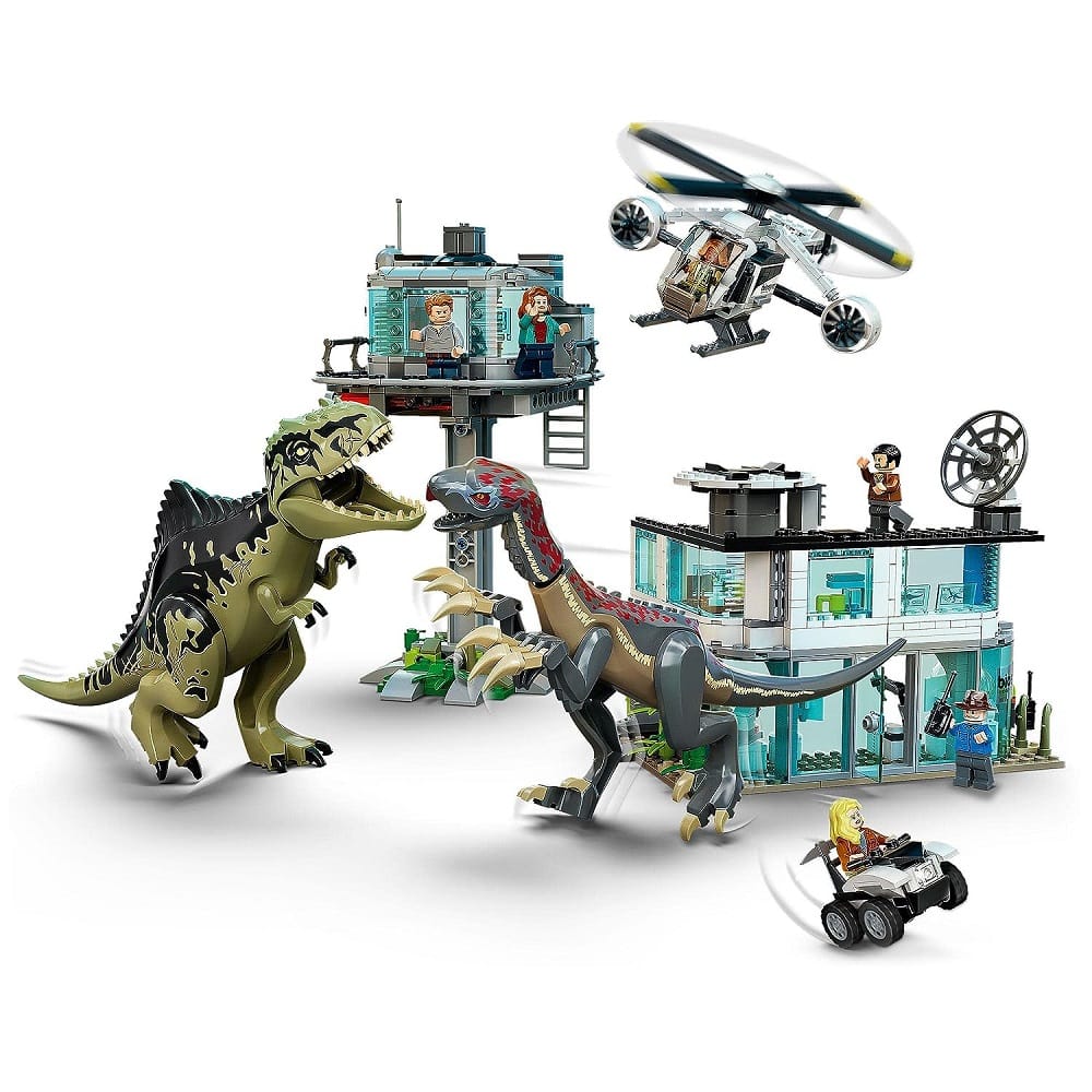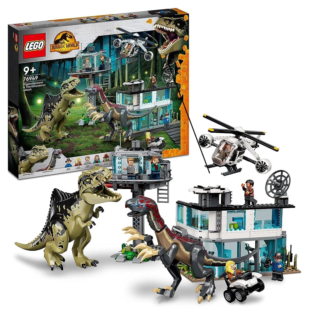 - Dinosaur battle toy playset – Kids can play out dinosaur duels and relive Jurassic World: Dominion movie action with this LEGO Jurassic World Giganotosaurus & Therizinosaurus Attack (76949) set