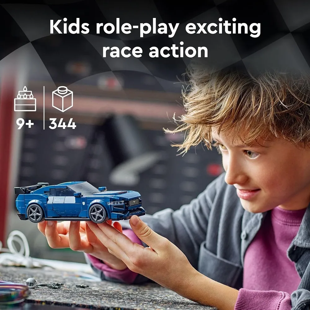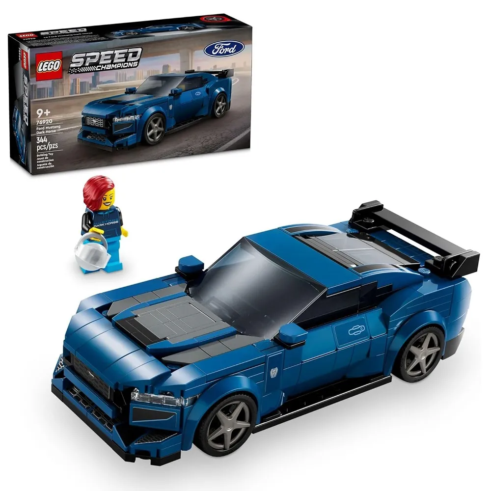 The LEGO Speed Champions Ford Mustang Dark Horse Sports Car (76920) toy vehicle is a faithful brick-built version of the powerful real-life model from the iconic American car maker. Kids aged 9+ will love to collect, build, display and play out action with this blue toy car. The Ford Mustang toy car features several authentic design features: the rear wing, distinctive grille, headlights, tailpipes, Ford logos and detailed interior with a gearshift and dashboard.