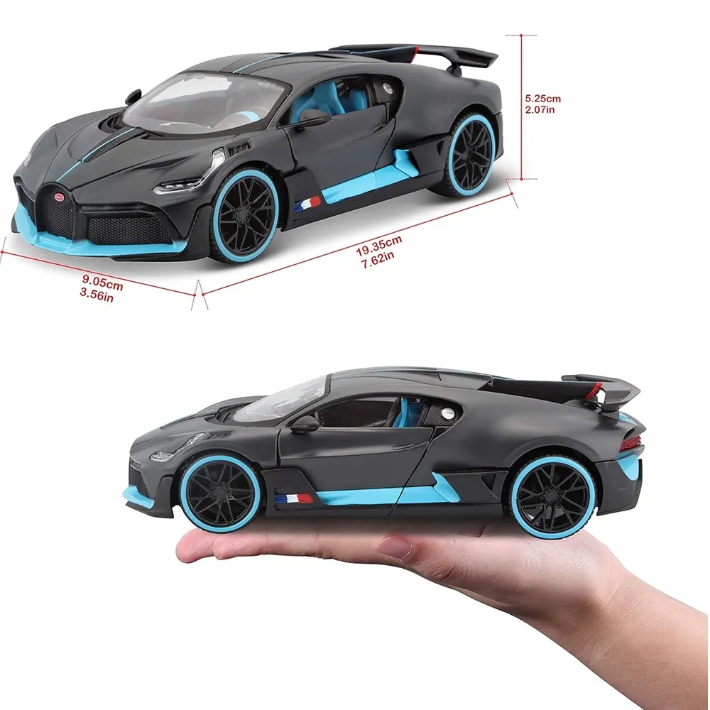 Maisto 1/24 Scale Bugatti Divo (Dark Grey) Diecast Car Model for 14+ Years. Highly detailed model made with diecast & plastic, with openable doors.