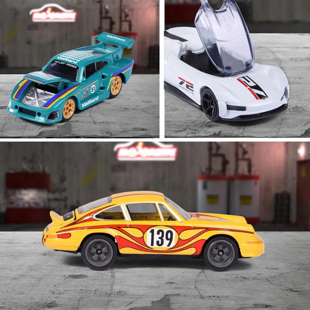 6 legendary Porsche models by Majorette. These miniature vehicles from the Porsche Deluxe Edition are a must-have for all Porsche fans. Officially licensed by Porsche, Vaillant and Gran Turismo (Sony), the models have an original design with eye-catching and futuristic features inspired by legendary motorsport and racing vehicles.