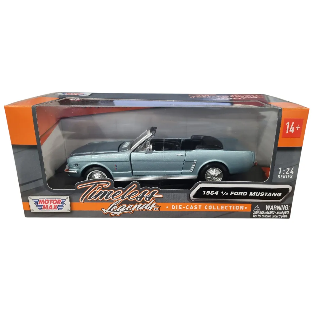 Relive the birth of an American legend with the Motormax 1/24 Scale 1964 1/2 Ford Mustang Convertible Diecast Model (73212). This finely detailed replica celebrates the very first Mustang—a car that sparked a revolution in style, performance, and freedom.