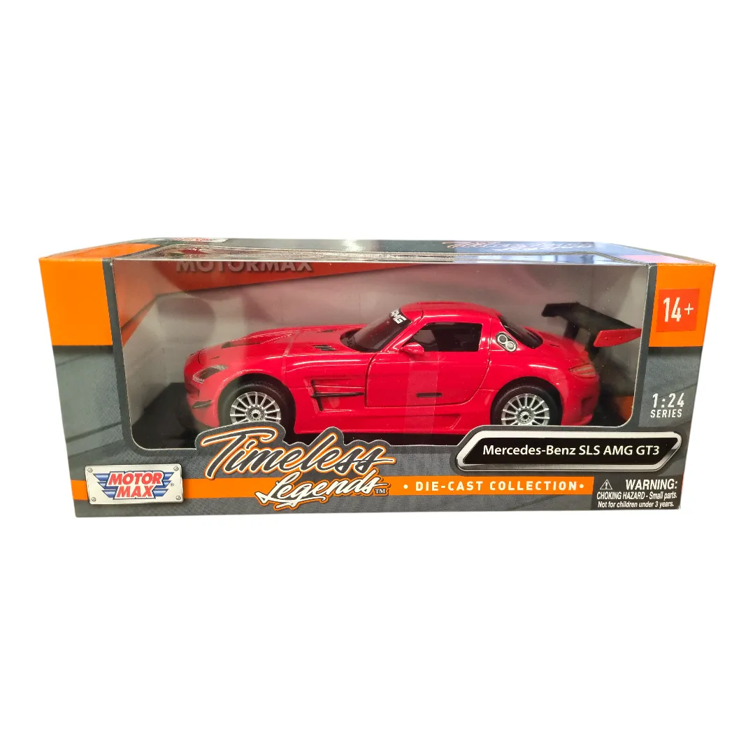 - Bring the excitement of GT racing to your collection with this Mercedes-Benz SLS AMG GT3 diecast model by Motormax.