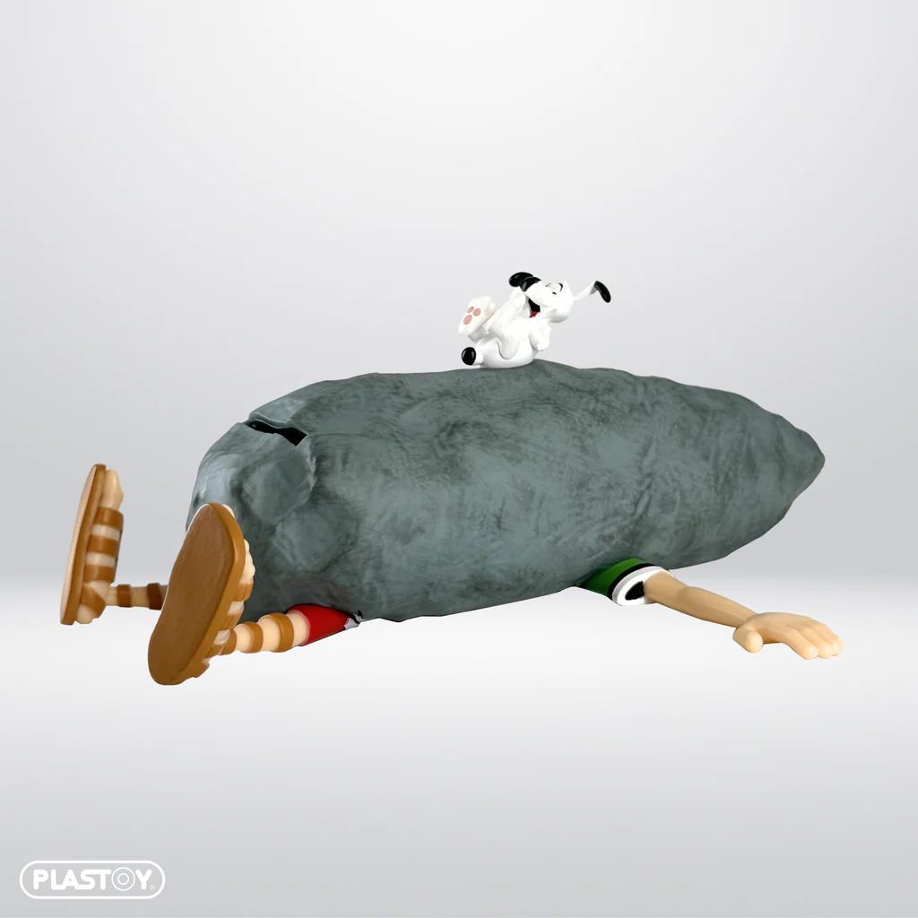 - Check out Plastoy piggy bank “Idéfix and the Roman crushed by a menhir”, with Idéfix laughing lying on the menhir. This humorous design captures the indomitable spirit of the Gauls while offering a fun way to protect your savings. A must for all Asterix fans!