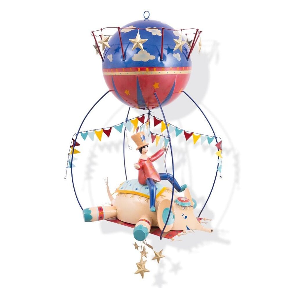 - Mobile metal hanging for room decoration with Circus Theme depicting a clown & an elephant.