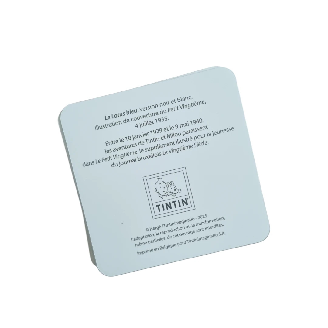 - Set of 8 cardboard coasters with illustrations of Le Petit Vingtième – The Blue Lotus B/w Version