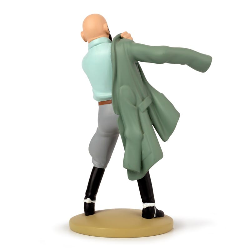 In turn, a counterfeiter, mercenary or even a secret agent, the evil Dr. Müller – alias Professor Smith, as featured on page 26 of Land of Black Gold – puts on his jacket when he has just been unmasked by Tintin. This hand-painted figurine comes in a transparent cylindrical packaging.